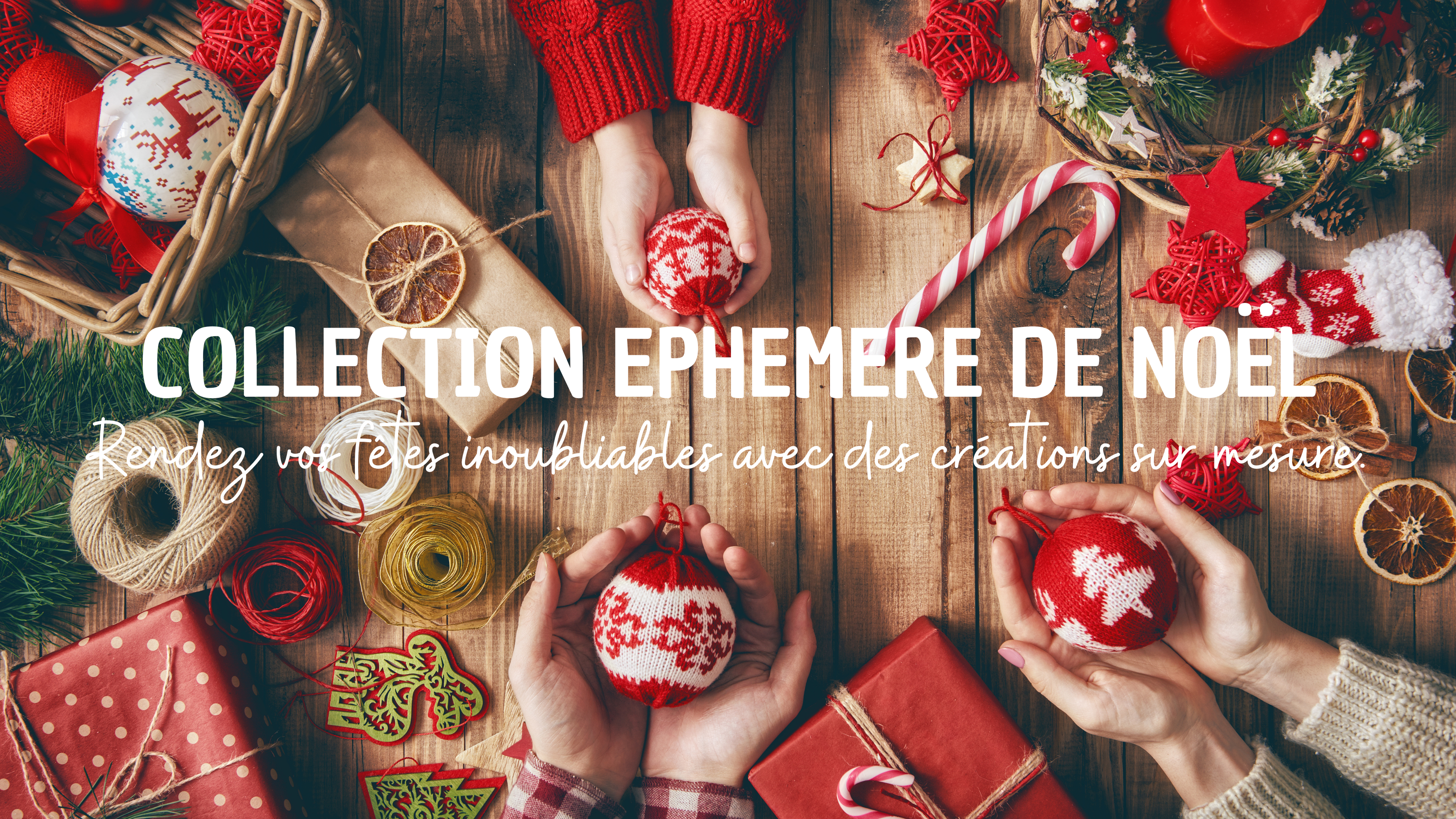 Une sélection limitée de créations personnalisées, disponibles uniquement pendant la période des fêtes. Des pièces pensées pour apporter une touche de magie à vos cadeaux et décorations.